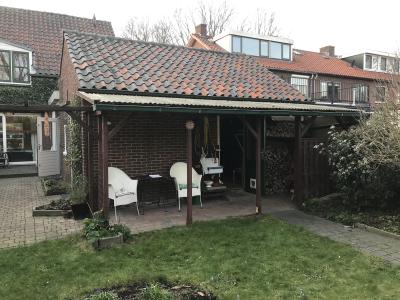 Afvoer uitlopend in de tuin zodat het regenwater goed terecht komt.