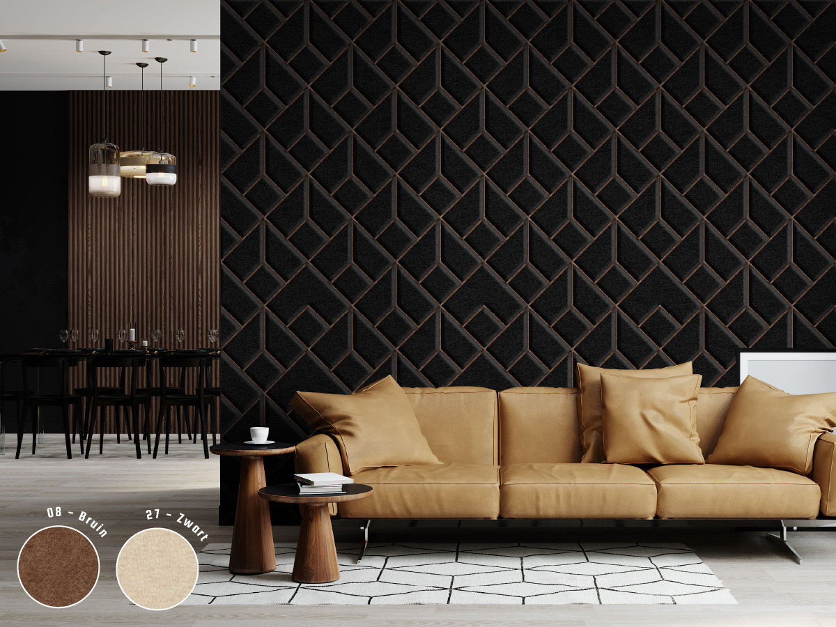Onze akoestische wandpanelen van PET-vilt (ook wel PET-felt) zorgen voor een betere akoestiek en geven iedere muur een instant upgrade. PET-vilt is gemaakt van gerecyclde PET-flessen. Een stevig duurzaam materiaal dat geluid als geen ander absorbeert. Met de wandpanelen maak je een duurzaam design statement van jouw wand. Of het nu gaat om een kantoor, restaurant, school, hotel of woonhuis.