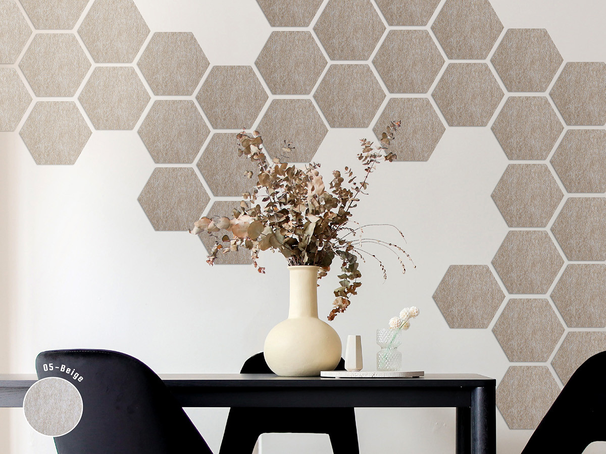 Hexagon paneel van PET-vilt voor op de muur