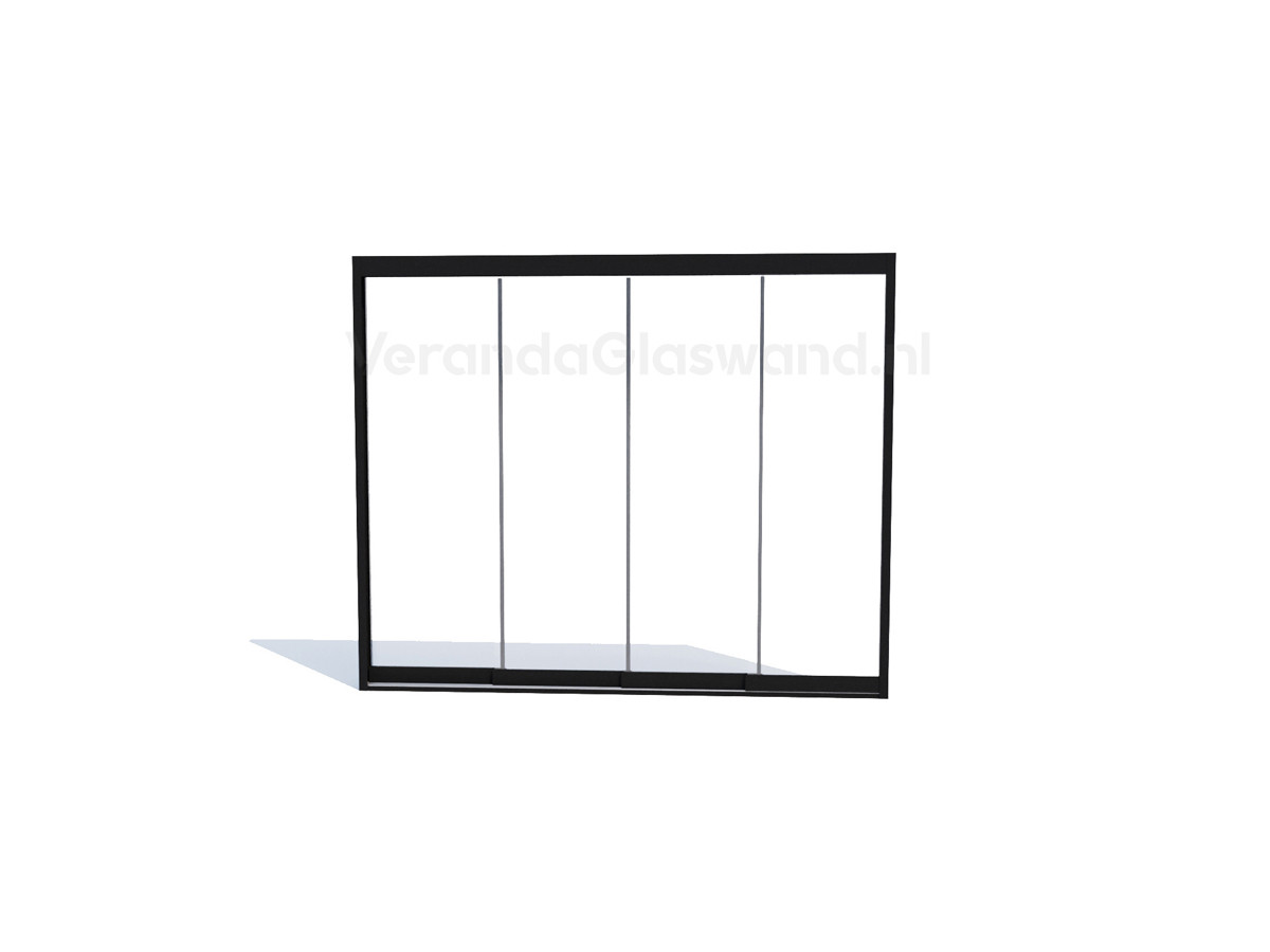 - Compleet pakket: Glaspanelen; H-profiel voorgemonteerd met wielenset; Railset; Tochtborstels; Zijaansluit U-profielen